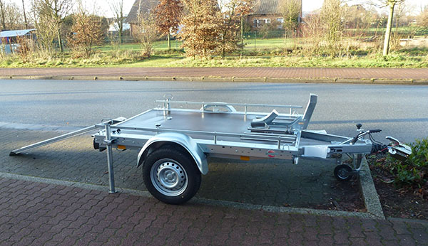 Ich habe Anhänger, die ich speziell für den Motorradtransport umgerüstet habe. Da ich selbst seit Jahren gerne das Motorrad mit auf Reisen nehme, suchte ich nach einer Möglichkeit, mir die eintönigen Autobahnfahrten zu ersparen.